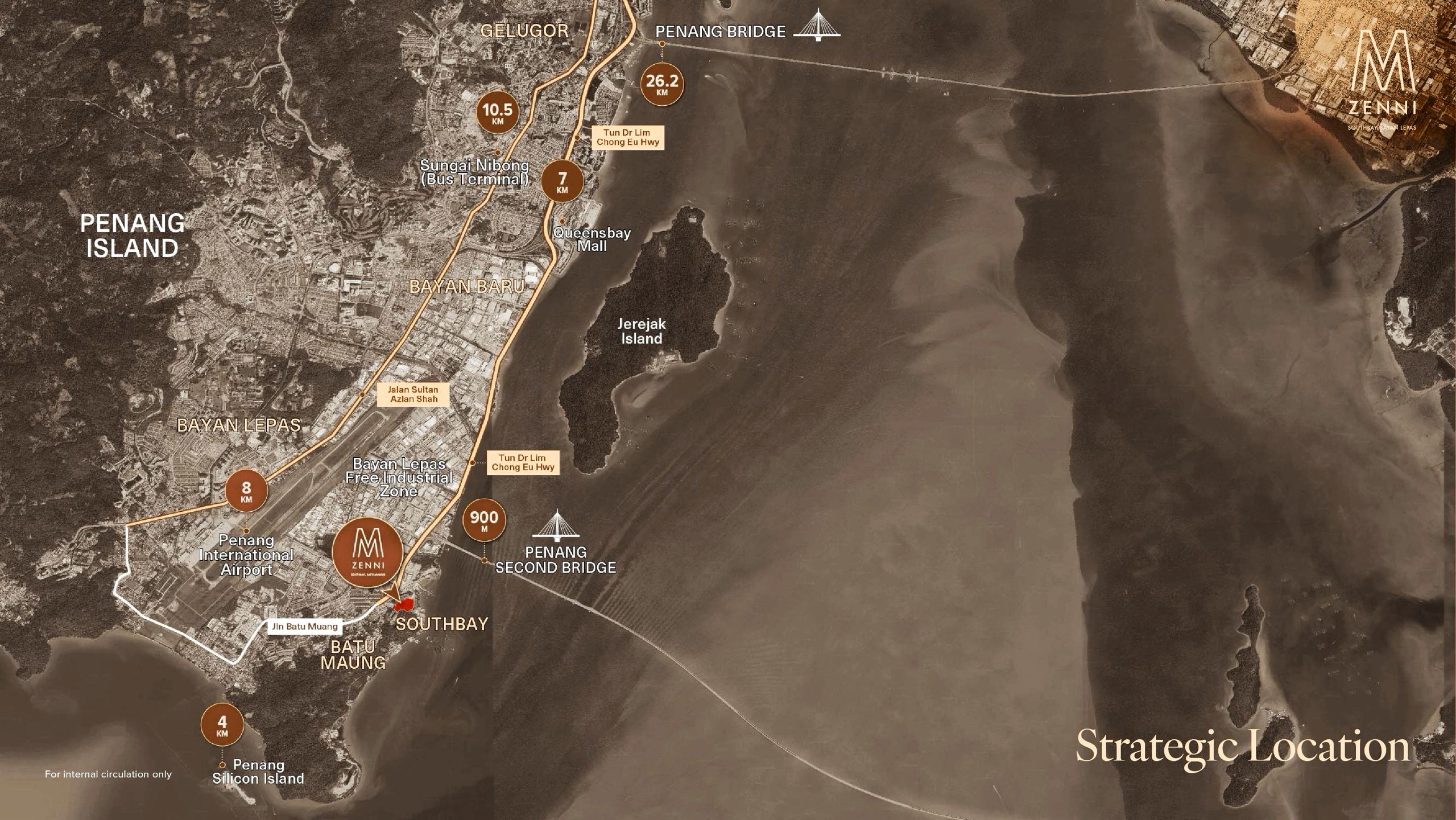 项目位于快速崛起的 Southbay City 城镇核心区,紧邻 槟城第二大桥,以“建筑 × 永续 × 社区”为理念打造和谐、舒适、优质的居住空间。