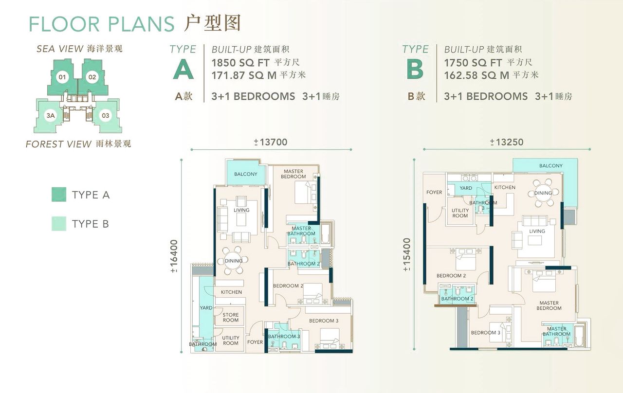 每个户型都以舒适、空间与功能性为核心设计,宽敞实用,非常适合三代同堂,也提供极大的空间灵活度供您打造独特居家风格。
